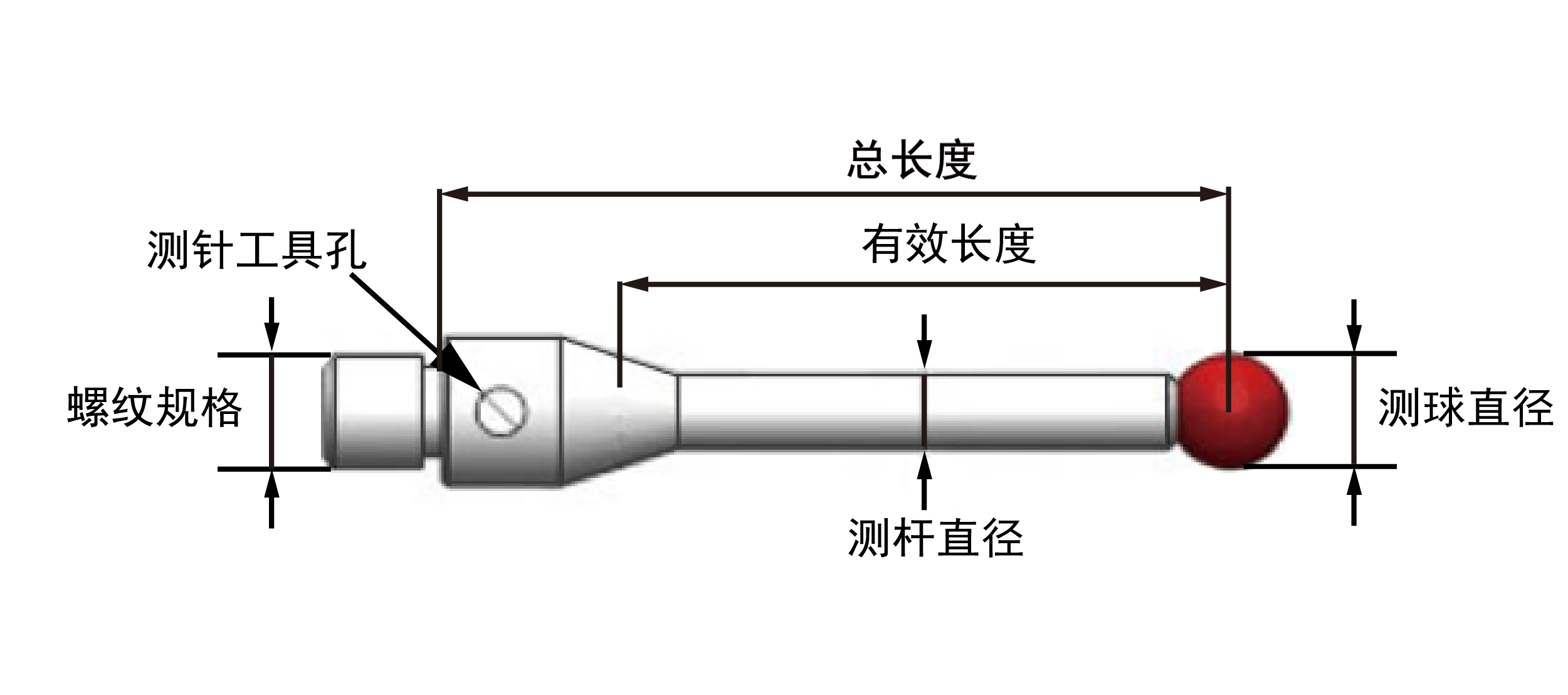 螺紋系列/不銹鋼測桿/紅寶石測球